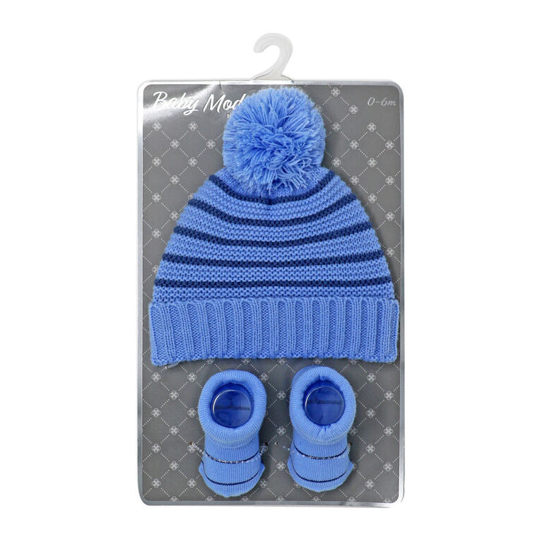 The elasticized fit ensures that the hat stays securely in place, while the non-slip soles on the slippers keep tiny feet safe and stable. Whether it's for a baby shower gift, a cozy day at home, or a fun accessory for outings, this knit combo is the perfect way to complete your baby’s outfit.